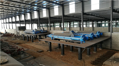 通過本公司最新ZN3智能壓濾機專用泵實現(xiàn)高壓變頻全自動,送料進入本公司生產(chǎn)的超高壓圓板全自動液壓壓濾機進行泥料和水的分離,形成成型泥餅原料,泥餅含水率20%左右,并通過全自動傳送帶使泥餅到達指定煉泥設(shè)備。3套設(shè)備只需1人看護節(jié)省人力2人,節(jié)電達60%以上,完全滿足客戶要求。