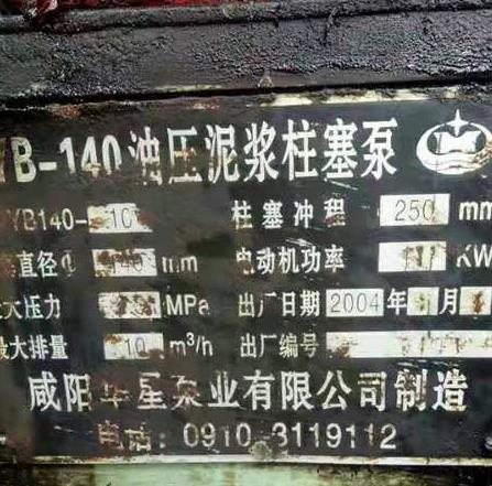 下圖是某客戶使用六年多的華星柱塞泵,出廠日期2013年5月,使用至今,零故障,零維修。該泵型號為YB250D-35,流量為35方/小時,壓力范圍0-1.8MPA,額定壓力1.5MPA,配用電機(jī)功率18.5KW,外形尺寸1米9*1米3*2米2。